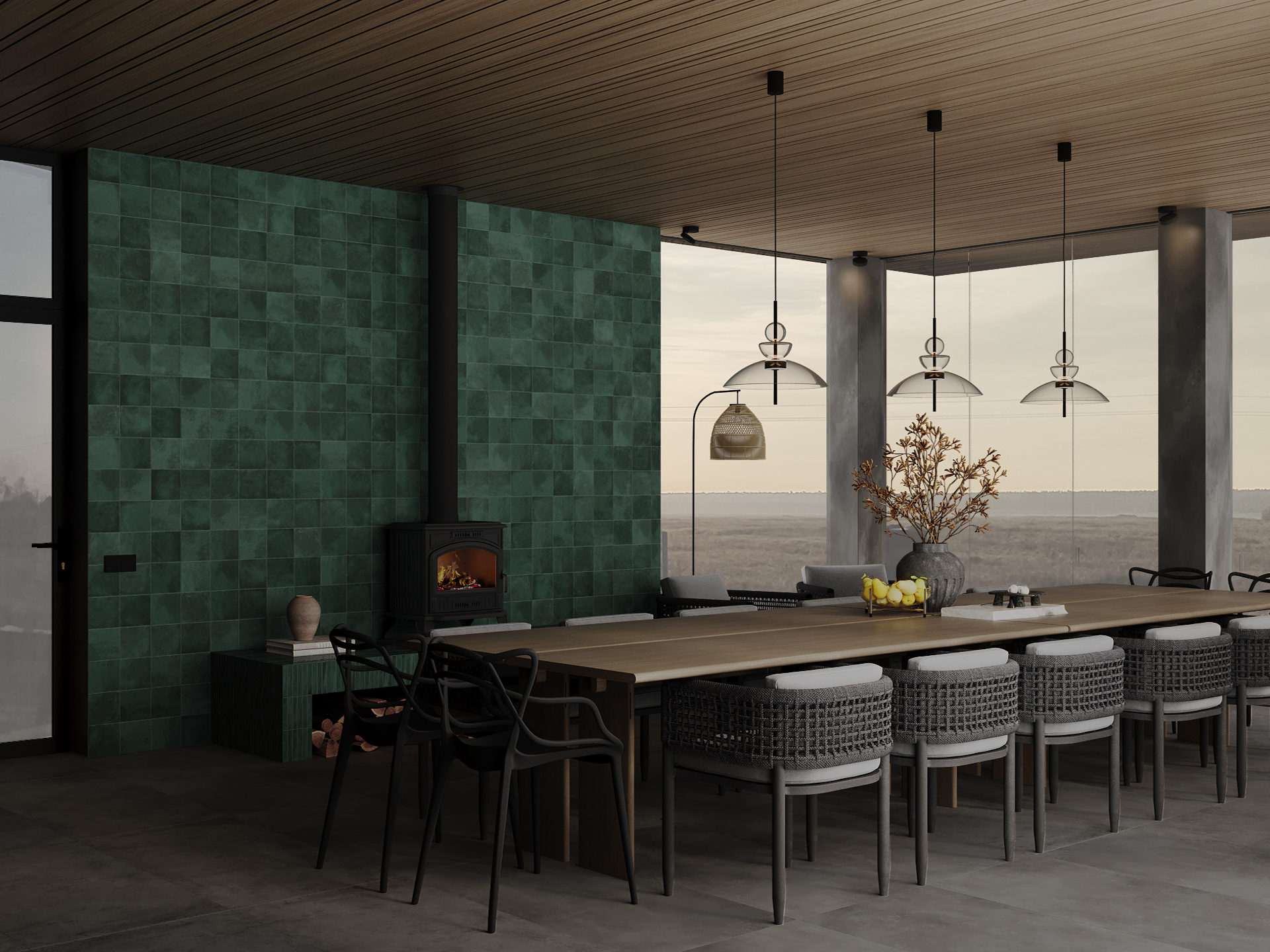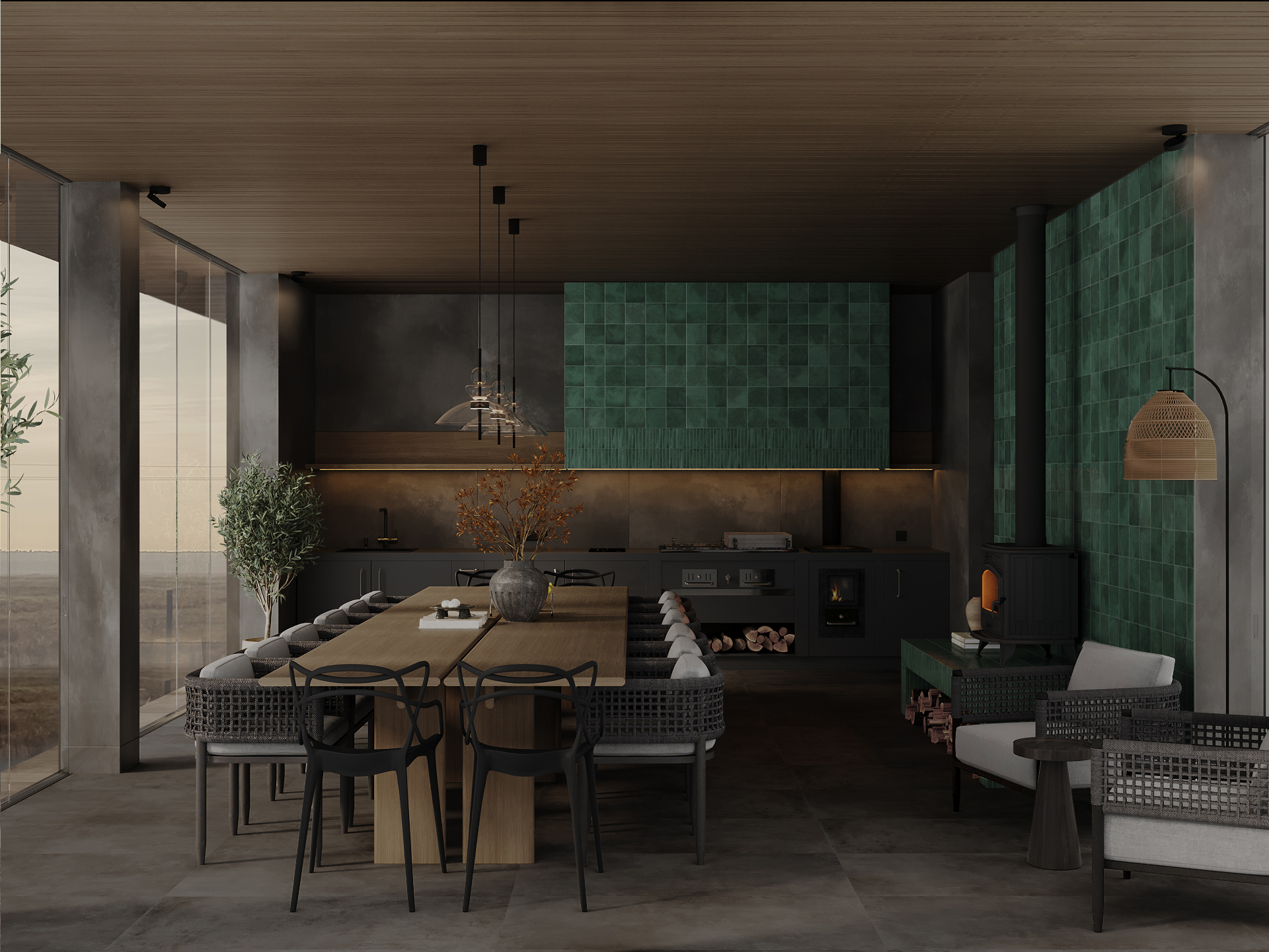 Дизайн летней кухни с панорамным остеклением в д. Губино.