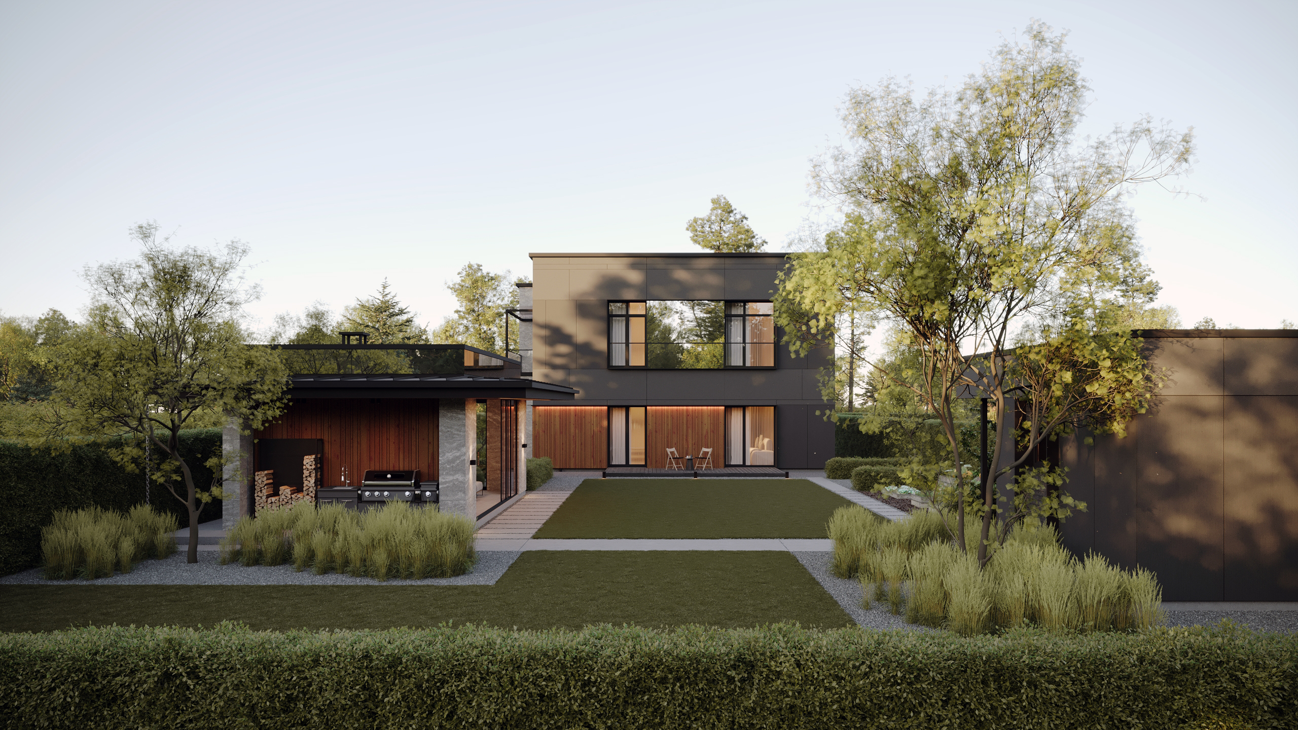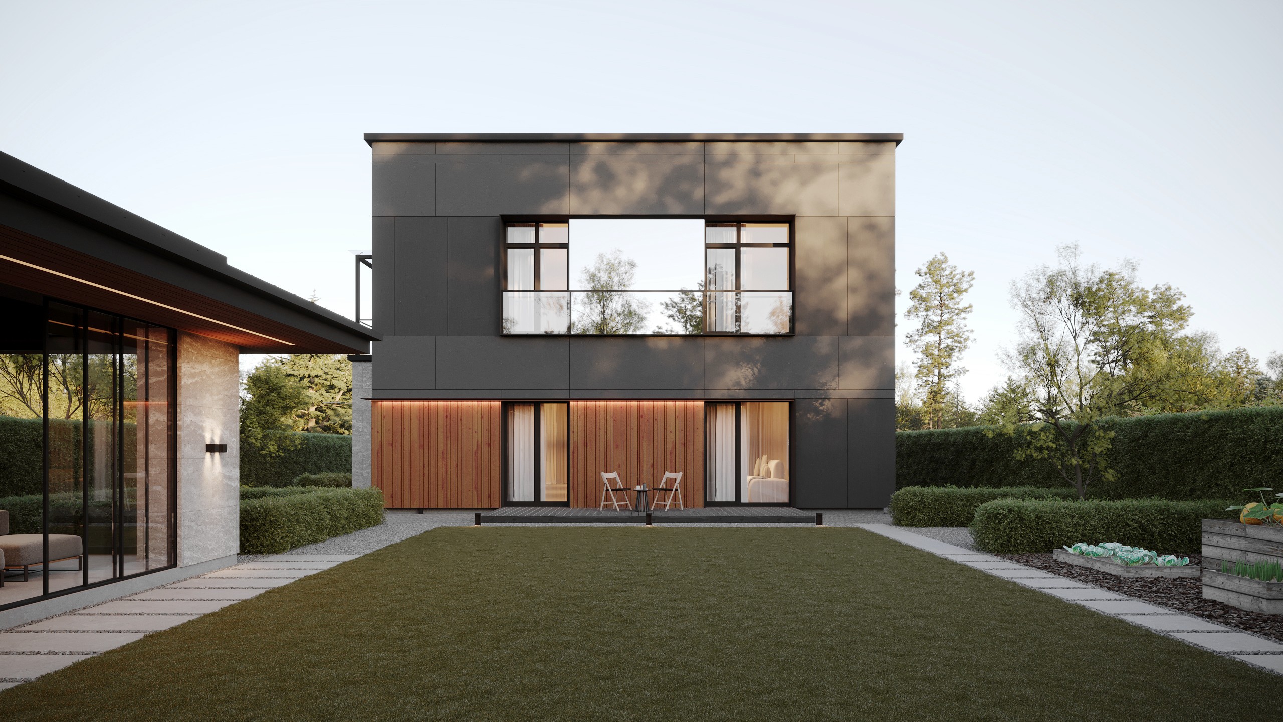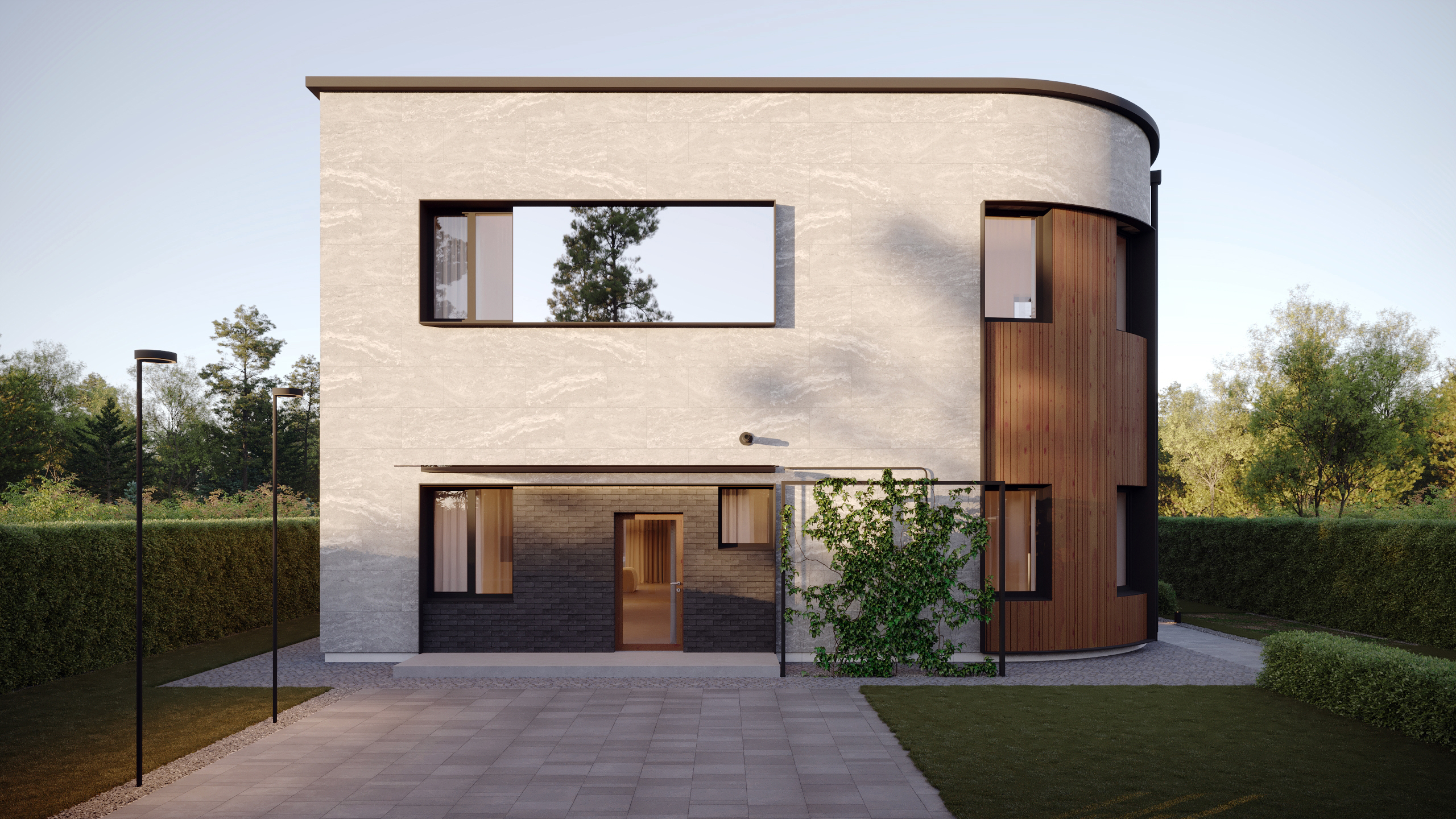 Лаконичный проект фасадов дома из гибкой керамики в аг. Ратомка.